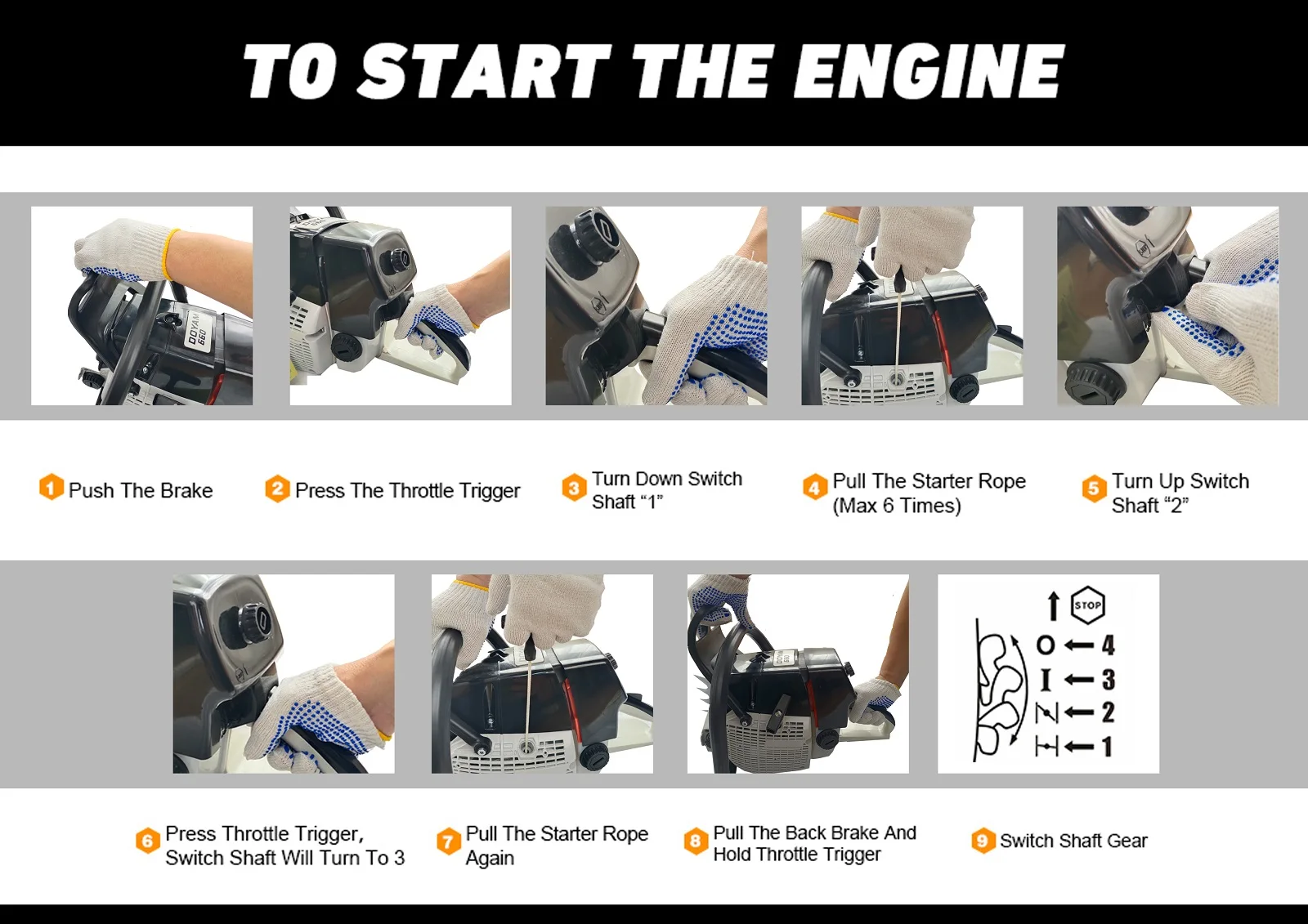 blowers, hedge trimmers, ground drills, broadband hedge trimmers, high branch saws, chain saws open plate frame, electric pruning