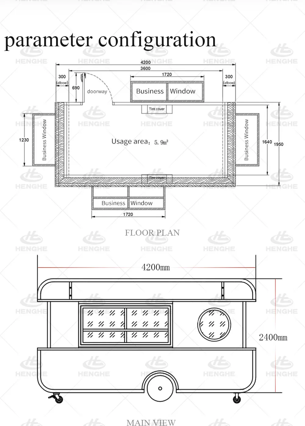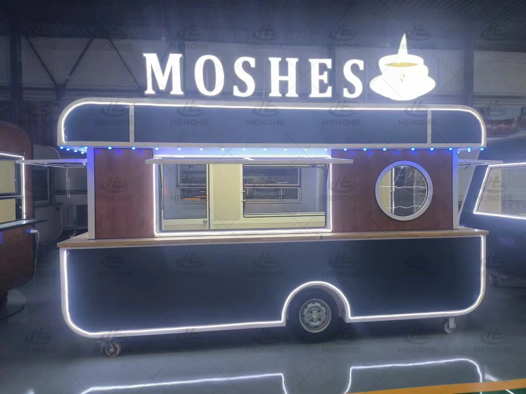 Basic configuration (customizable) | Galvanized steel pipe frame, mirror stainless steel body, brushed stainless steel interior wall panel, Traction frame, trailer jack, external power interface, lighting tube, socket, switch | |