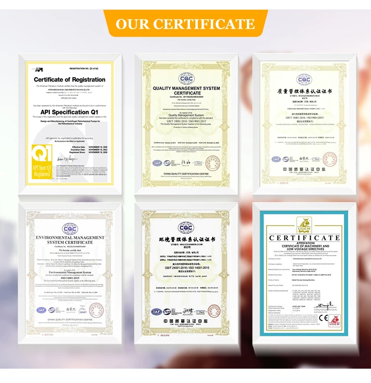 A:Our products have CE, ISO 9001:2000, ISO 9001:2008, API-7K, etc. Our products are all qualified product because they are all strictly inspected before leaving the factory, please don't worry.