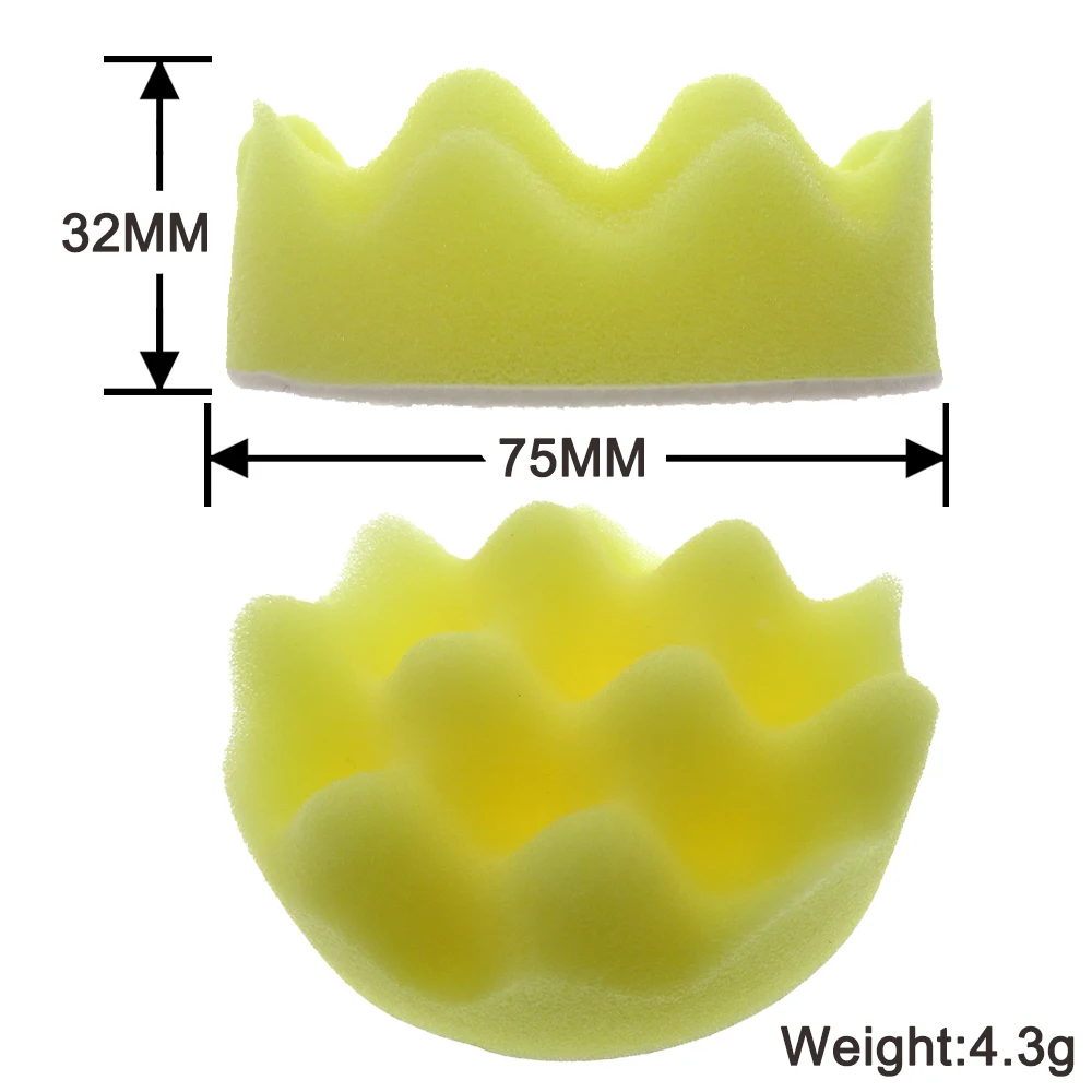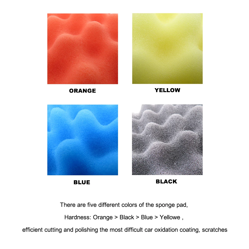 Content | 2 x 3inch Orange waffle pad 2 x 3inch Yellow waffle pad 2 x 3inch Blue waffle pad 2 x 3inch Black waffle pad 2 x 3inch Orange polishing pad 2 x 3inch Yellow polishing pad 2 x 3inch White polishing pad 2 x 3inch Black polishing pad 2 x 3inch Wool pad 2 x 3inch Backing Pad |