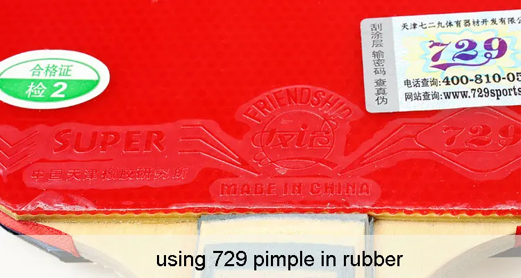 Two side rubbers: one black and one red, RITC 729 pips-in rubber