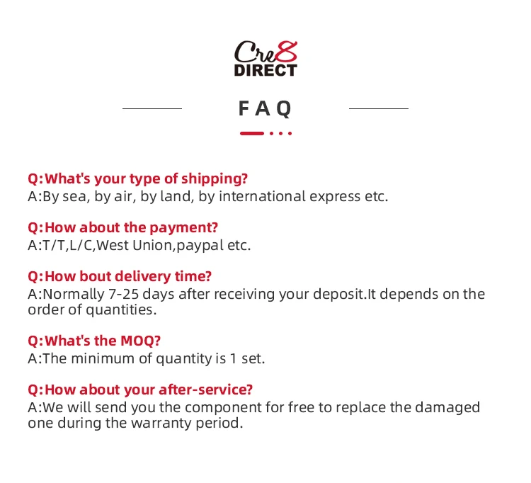 Delivery Time | Usually 10 days for customized sample, 15-25 days for mass production.We will double check based on your order.Please feel free to send request. |