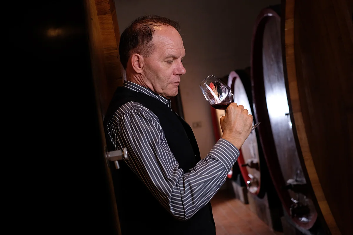 The MOCALI estate is situated to the South-West of Montalcino at an altitude of 350 metres s.l.m., we walk for about 2 km, a dirt road nestled in the range of Mediterranean forest is characterized mainly by oaks and arbutus, arrived in the company enjoys a panoramic view of the valley vineyards of Montalcino in the background with a view from the slopes of Monte Amiata extends to the Maremma. The company covers about 43 ha, 2 of olive groves and 10 are specialized vineyards. Immersed in Mediterranean forests we see the vineyard of Raunate, flanked by a tall pine forest where you can discover the remains of ancient kilns active in past centuries for the production of lime (quicklime) formed by the high percentage of this stone, known locally Balsano. The soil is rich of minerals alternating with limestone. In typical buildings in local stone preserve the traditional wine cellar and the same time technologically advanced, and an renovated area for the presentation and tasting products of farm. Mocali is’nt overly large, the entire production cycle is managed by the owner. About 90% of the products is exported mainly to Western Europe, Eastern Europe, USA, Canada, South America, Asia..