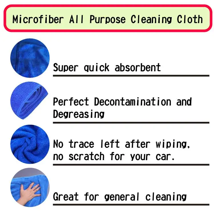 Production Details | 1. Super quick absorbent 2. Perfect decomtamination and degreasing 3. No trace left after wiping, no scratch for your car 4. Great for general cleaning 4. Daily life: home cleaning, wiping, glasses, objects, wiping face, body... all can be used. |