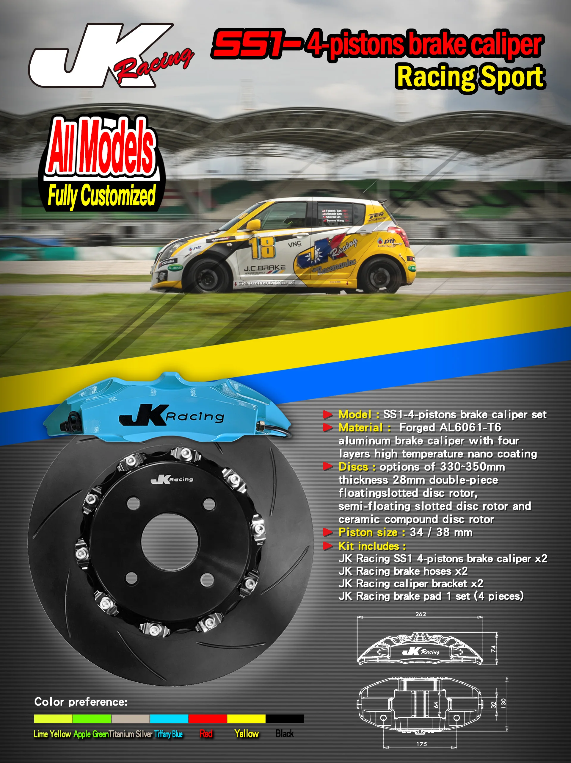 JK Racing SS1 4-piston Brake caliper kit: