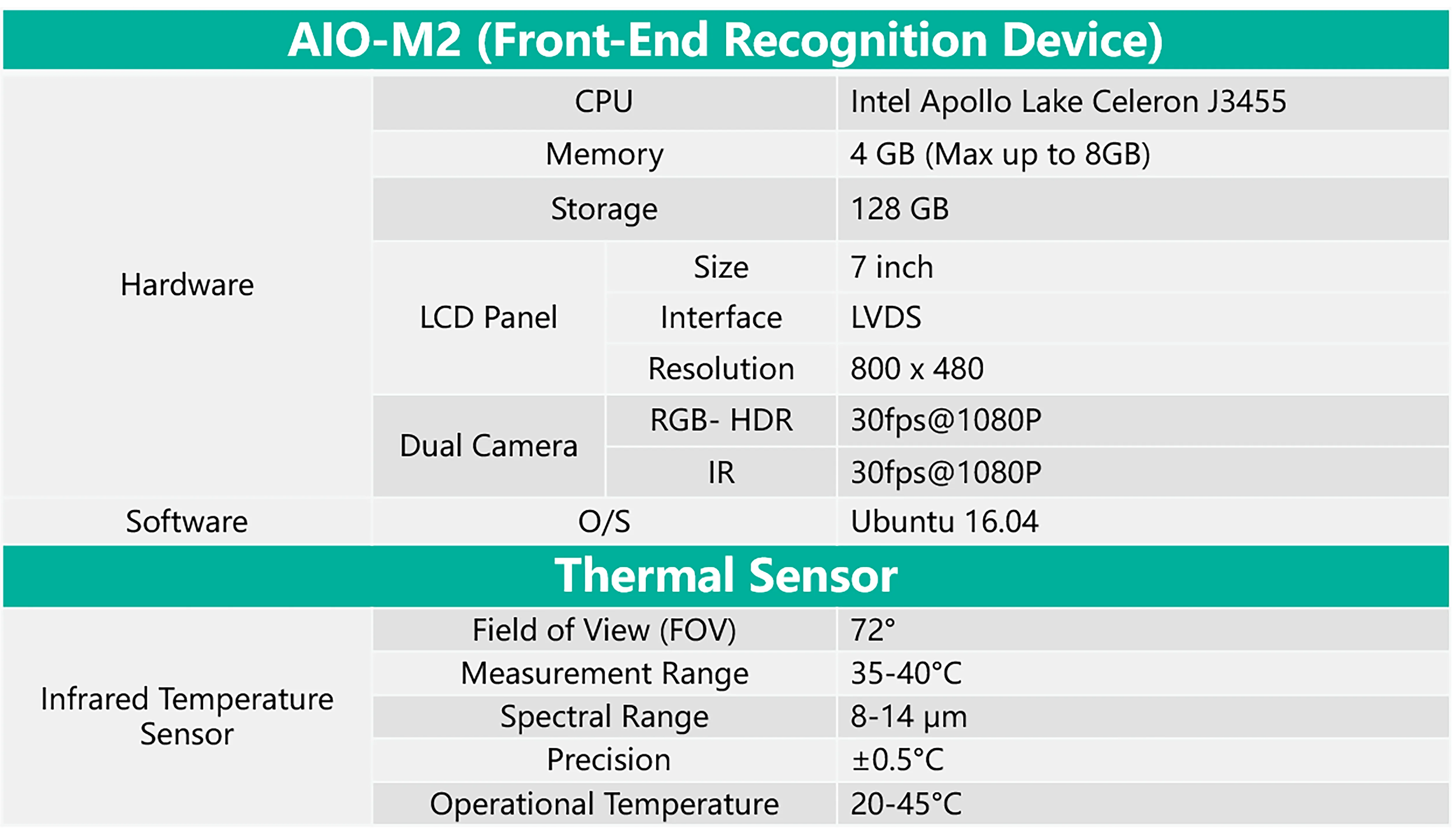 AIO M2 Front line Recognition Device•7 inch screen with IR&RGB dual lens