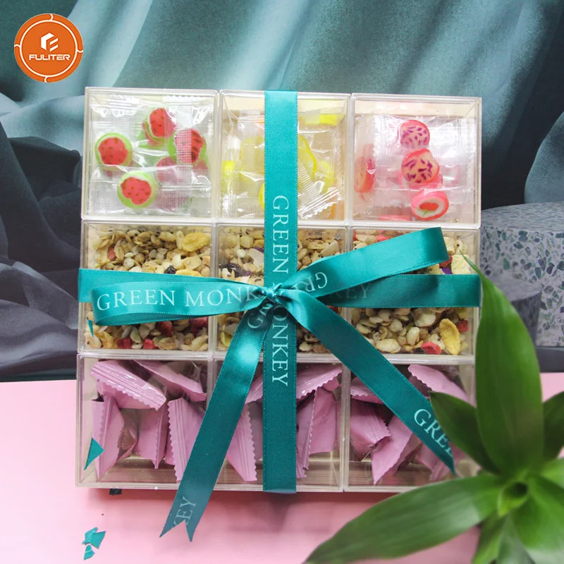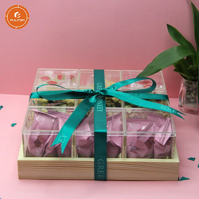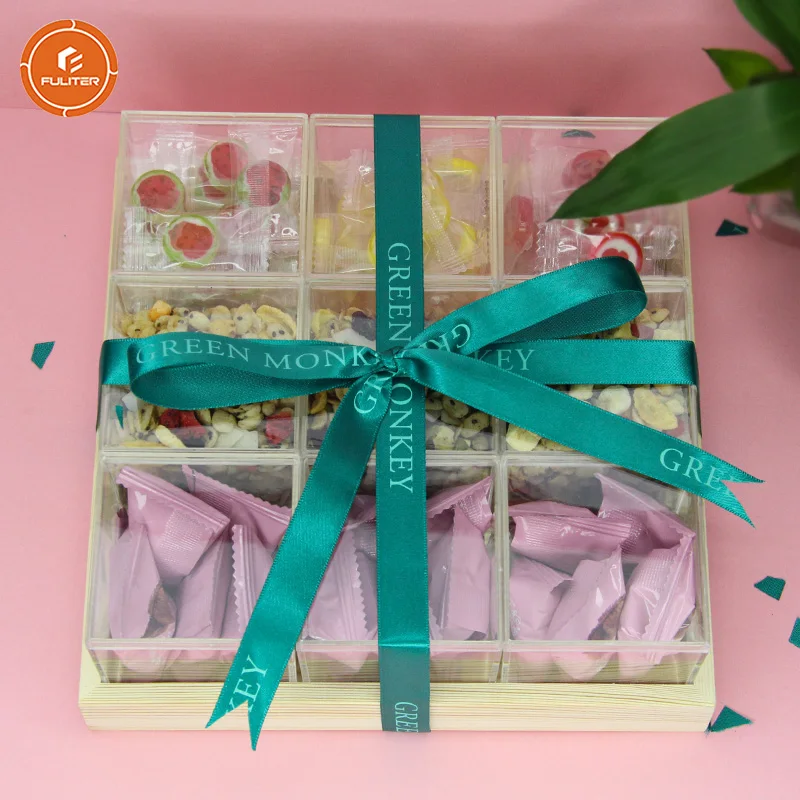 Premium Individual Chocolate Dry Fruit Gift Wood Tray Candy Acrylic Boxes