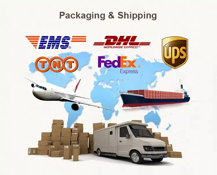 Shipping: For smaller order : Via UPS/DHL/FedEx/TNT/Ali express: ship time around 5-8 working days Via Fedex IP: ship time around 3-5 working days. Via E-epacked/EMS/E-express: ship time around 15-20 days. Via China post: ship time around 30 days. For bulk order : Via Sea: ship time around 25-30 days Via Air: ship time around 13-20 days. Or as customer request Terms of Payment Trade