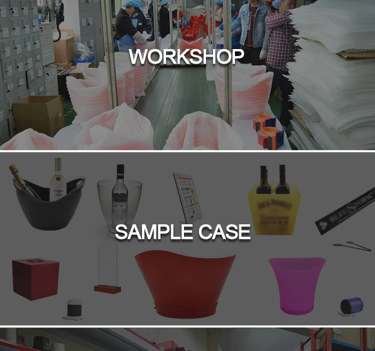 Мы фабрика была основана в 2004, который специализируется на ведерко со льдом и светодиодный барный инвентарь для диапазонах. У нас есть образец, можно SEDEX B номер. Мы находимся в строгая система контроля качества, чтобы контролировать качество продукции и обслуживания клиентов.