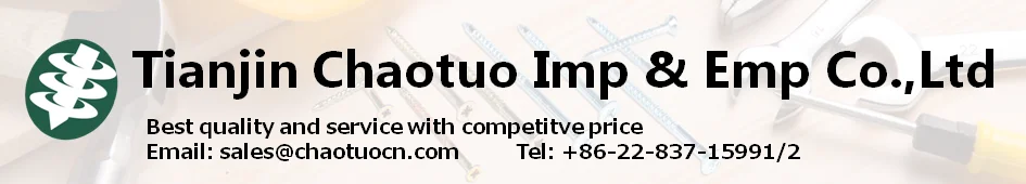 Tianjin Chaotuo Imp. & Exp. Co., Ltd. was founded in 2003, with our own factory specialized in manufacturing screws and nails. Our factory is located in Wangwenzhuang Industrial Park in Tianjin City, only 60 kilometers from Tianjin Port, which is one of the largest base of screws and nails in China.