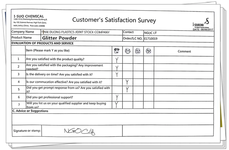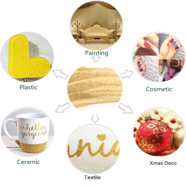 1. Вопрос: Каков Ваш Минимальный заказ (минимальное количество заказа)? A: 25 кг каждого цвета. 2. В: сколько цветов вы можете предоставить? A: серебристо-белый, золотой, разноцветный, Радужный и т. д. 3. В: сколько стоит образец? A: бесплатный образец для вас. 4. В: какое применение для блестящего порошка? О: такие как живопись, покрытие, печать, чернила, пластик, кожа, текстиль, лицо и тело и т. д. 5. Вопрос: Может ли ваш пигмент использоваться в нашем продукте? О: вам просто нужно сказать мне ваше приложение, мы могли бы порекомендовать подходящий продукт для вас, и мы также Может предоставить специальное руководство по применению. |