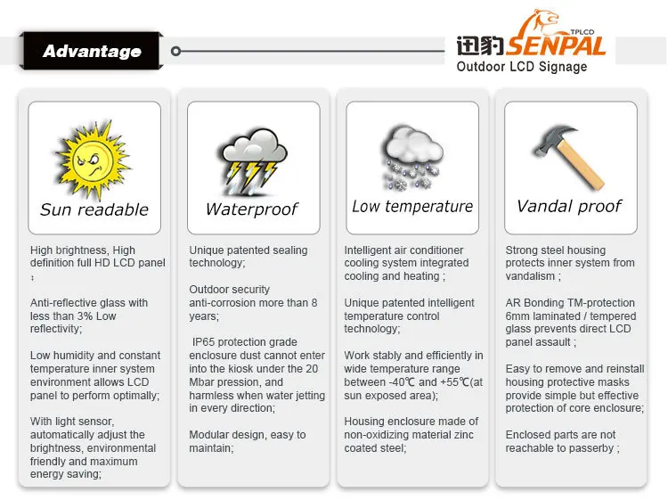 Модель | FD55P01 (всепогодный водонепроницаемый IP65 наружный lcd рекламный вывесок машина) |