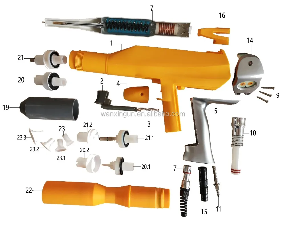 Запасные части, в том числе: плоский сопло, круглые насадки, портативный дуговой сварки, внешний гайки, оружие, вал, шланговый соединитель, дефлекторы, высоковольтный каскад, пистолет кабель и т. д.