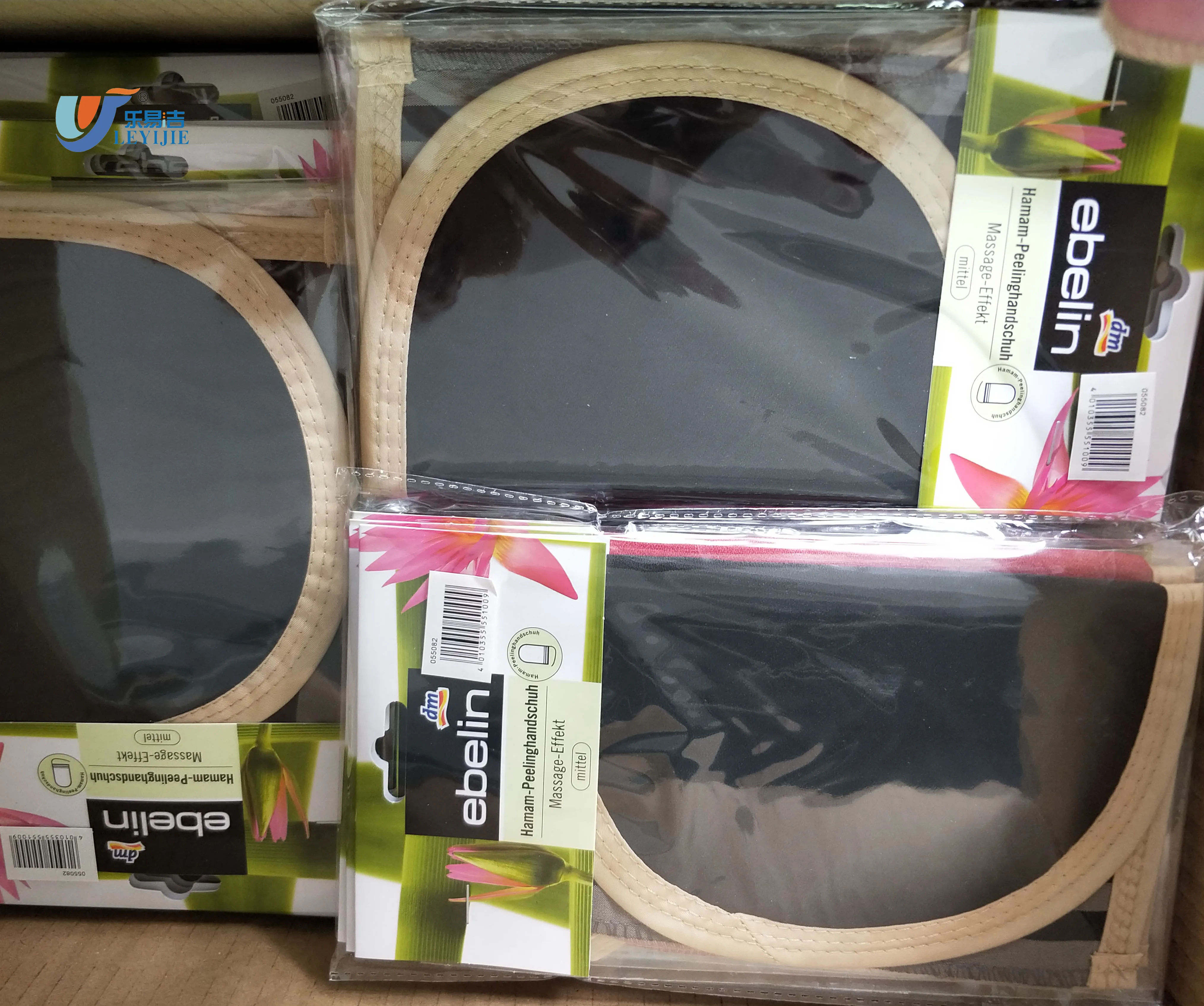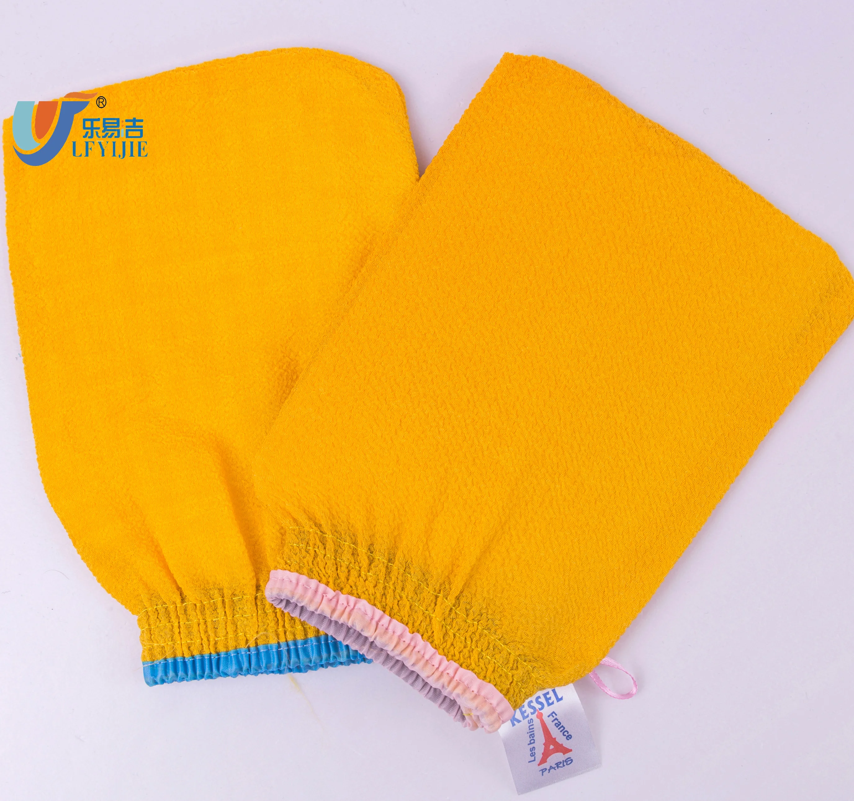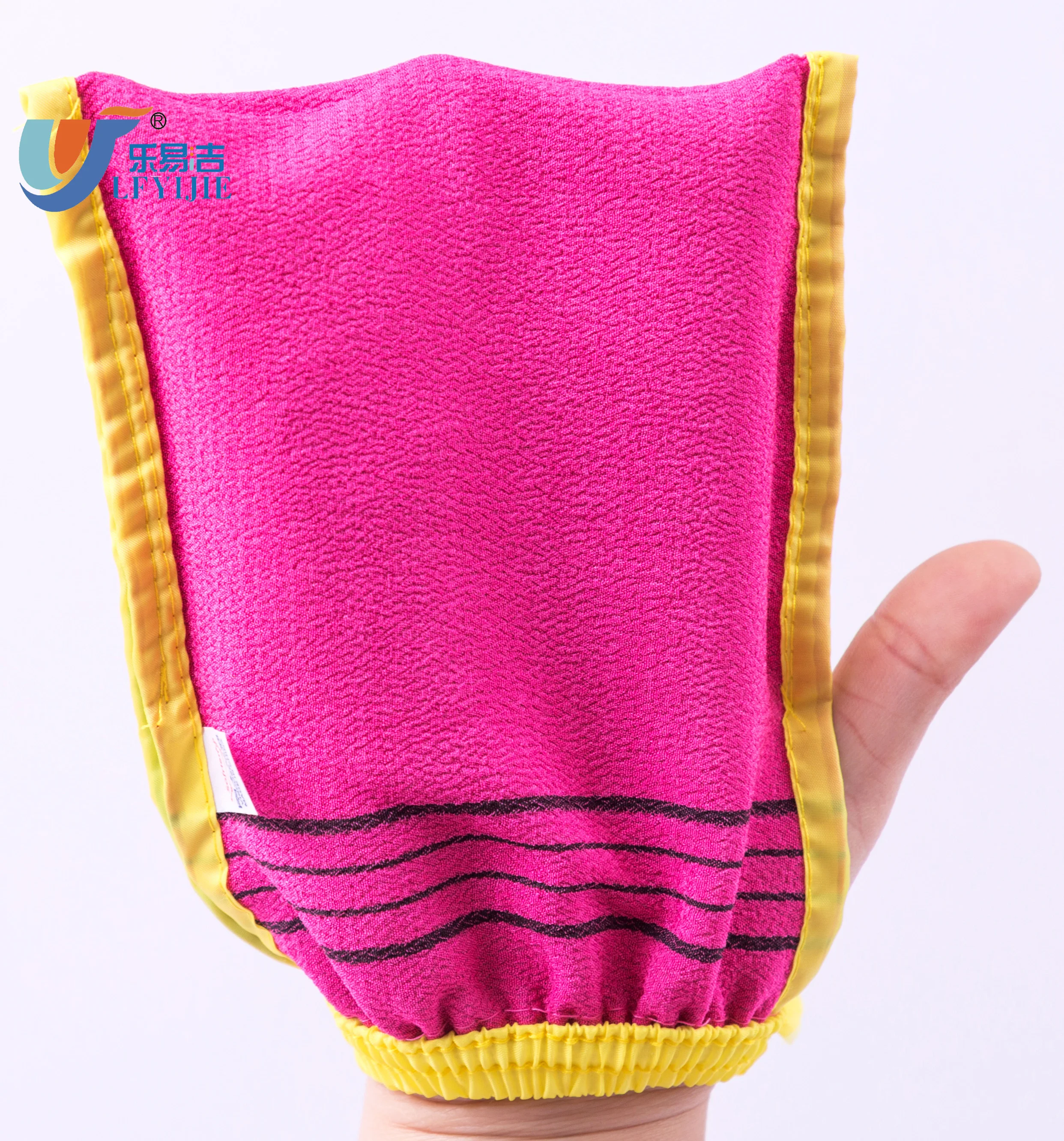 Viscose Fabric can make different size ,sharp,colors bath gloves