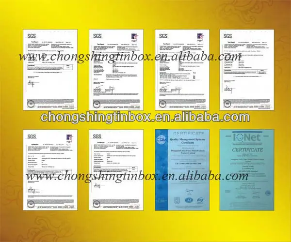 1) Material: | 0.21/0.23/0.25/0.28/0.30mm tinplate for choosing |