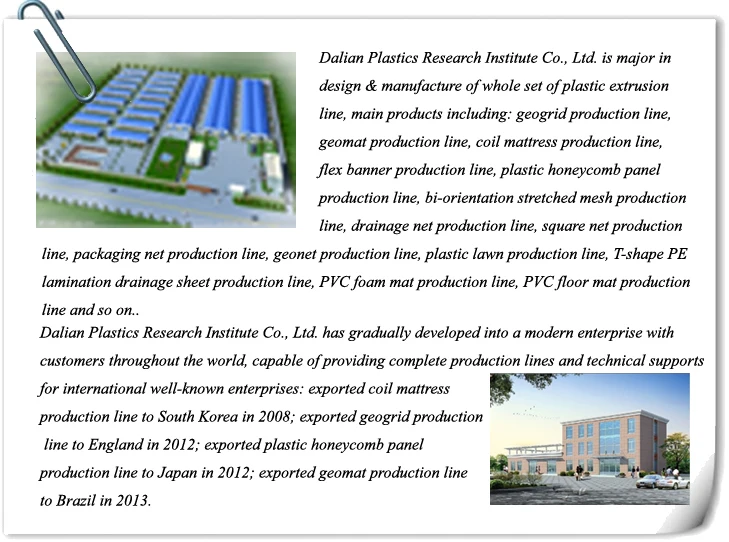 It is our patent and unique in worldwide,it can save two thirds cost than traditional calendaring method.Net film is a kind of plastic compound reinforced film which has cross fibre net between two layers of plastic film. Any kind of extrusion technology films can be used, such as PE.PP.PVC.PA.EVA,etc. Using terylene thread, cotton twine to shape cross fibre net. The net film has advantages of light in weight, good mechanical performance and lower cost, which can be used as substitute of traditional film in many fields. Net film is mainly used in architecture, agriculture and transportation as dustproof film. It is used to prevent material from dust. Its transparence is better than that of traditional mesh. It can be used as substitute of textile or tarpaulin in many fields such as dump area etc