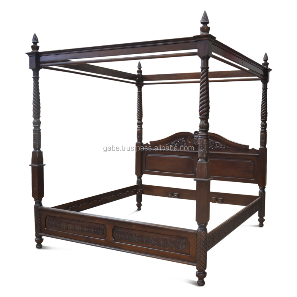 This classic English bed, Design and shape bed is inspired by Chippendale poster bed, here we modified and change the design of the carving and the shape of foots. The bed is very nice and suitable for Master Bed room. This bed can also be added to the mosquito net to add to the beauty of the display. All Material of this , made from solid teak wood, hand carving for all ornament. Made by our talented artisan. Coloring it self we applied with dark brown color.