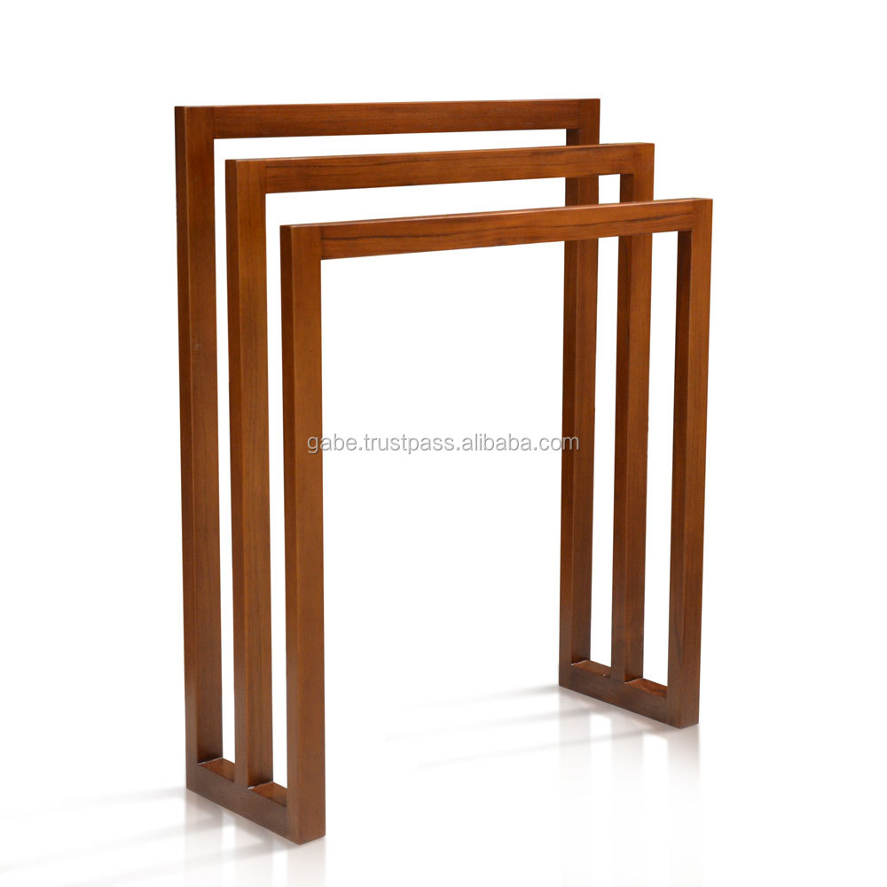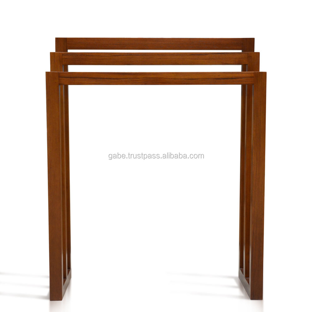 Вешалка для полотенец деревянная для ванной комнаты. Изготовлено из тикового дерева с натуральным цветом водной базы. Ручной работы от jepara мебельного плотника. Этот продукт был предложен на рынке США и Японии. Сделано в Индонезии.