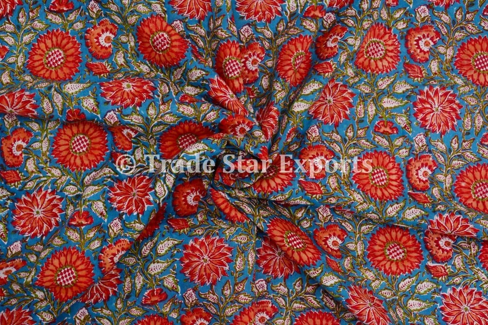 Beautiful dress material bagru cotton hand block print upholstery voile fabric