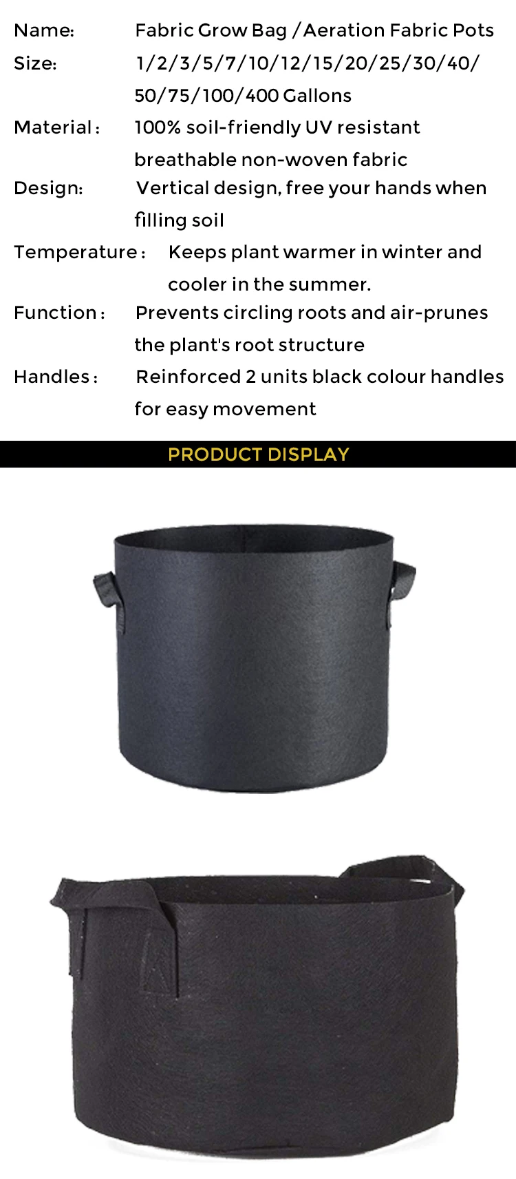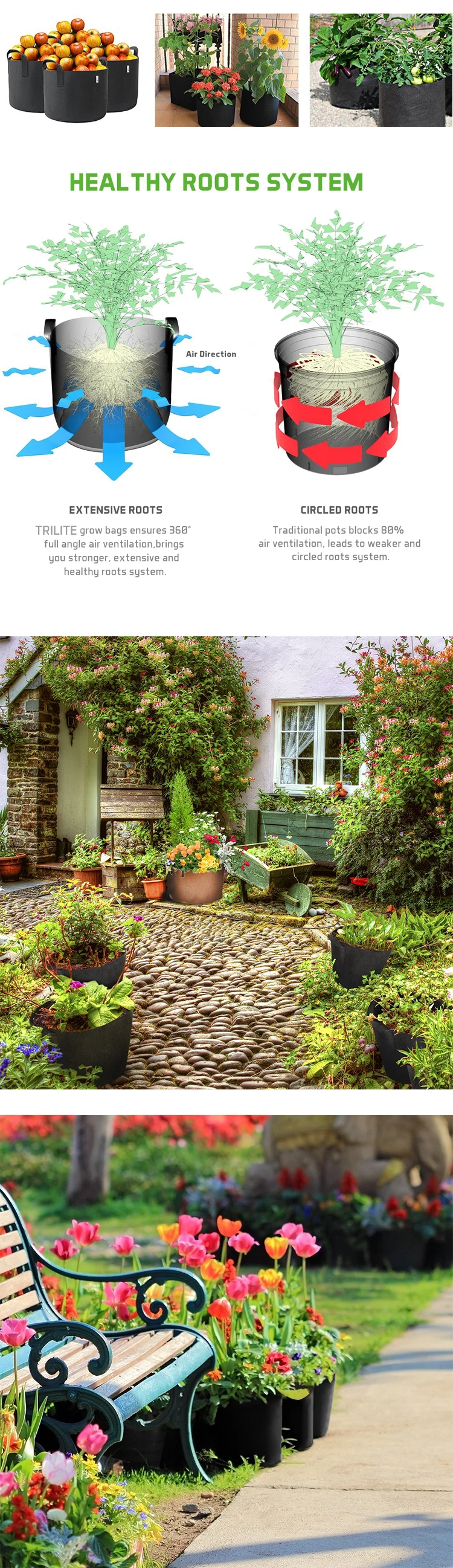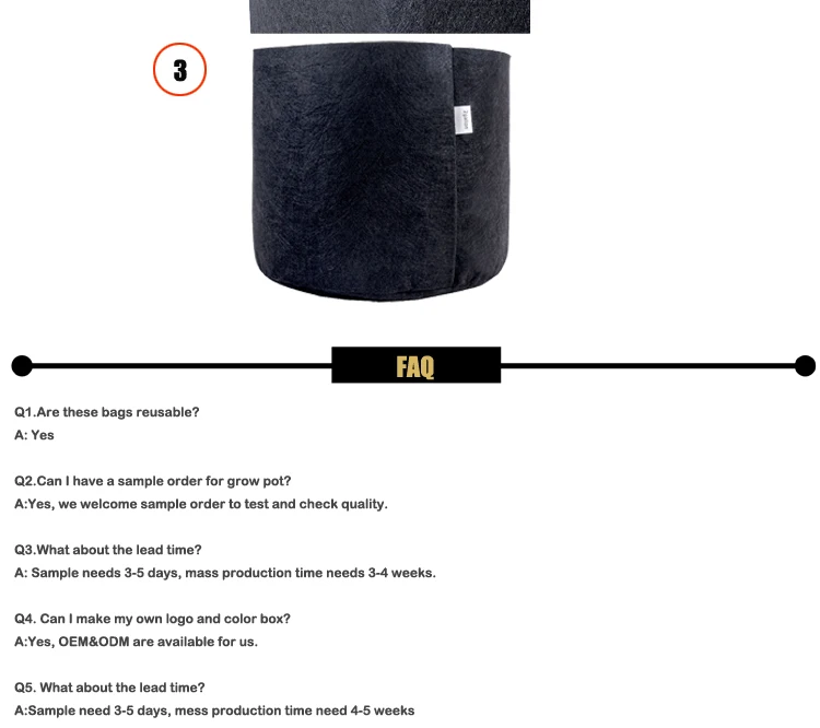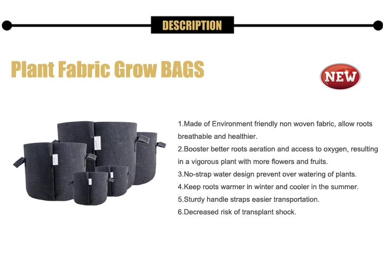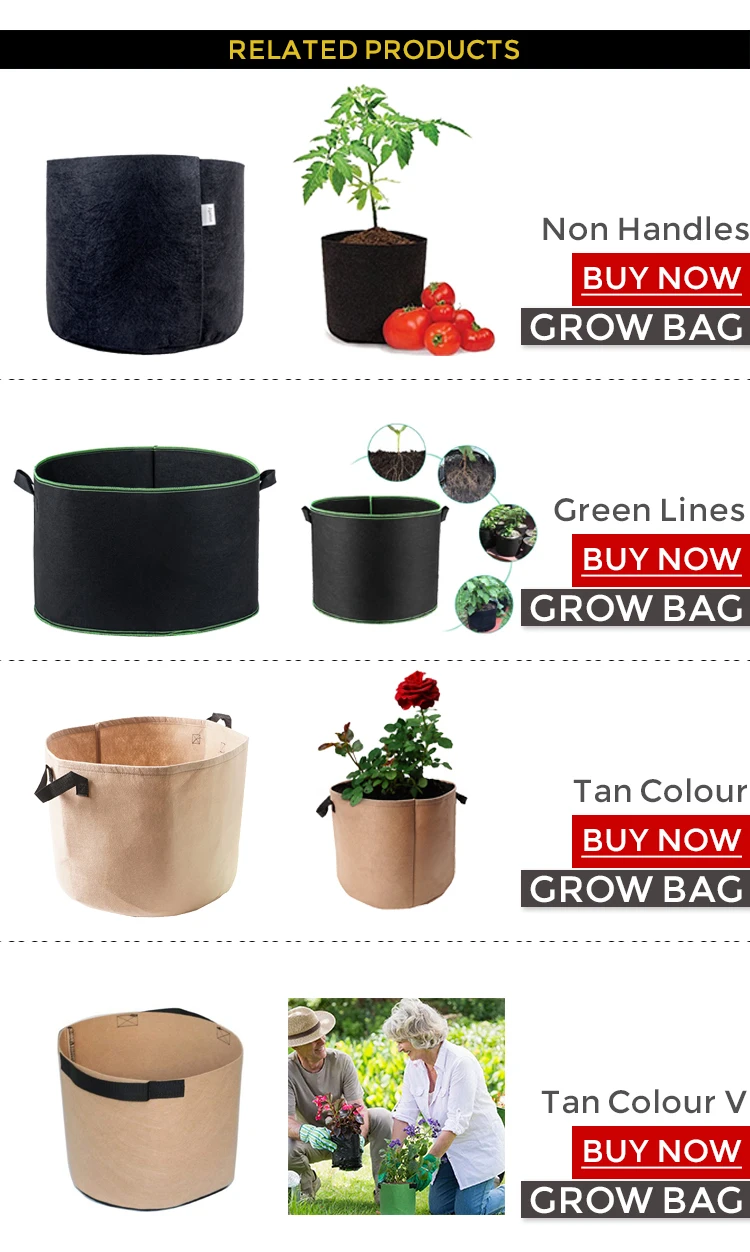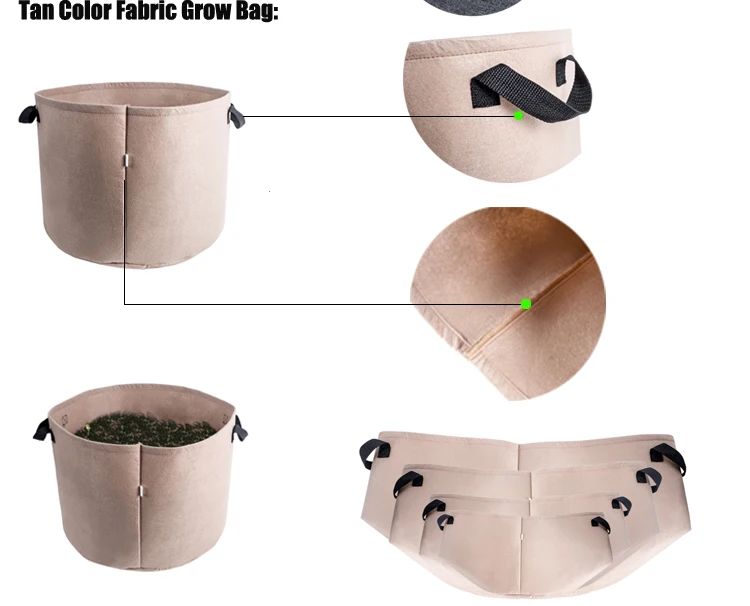 The plant grow bag is a new generation of flexible plant containers. It maintains necessary balance between air, soil and water, good at aeration and drainage. It could be used in house, garden or backyard.