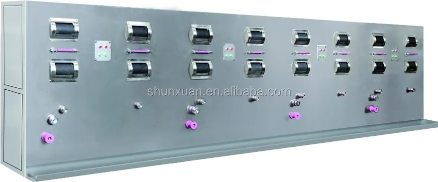 Main parts: finish oiling wheel and drive shaft, reducer and motor, frame and faceplate, tow guiding bar, tow pressing bar, tow guiding roller, finish oil circulating system, finish oil collection trough
