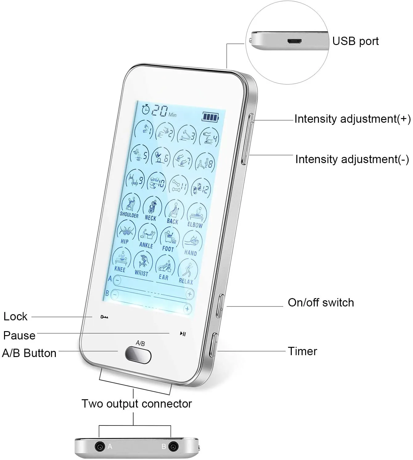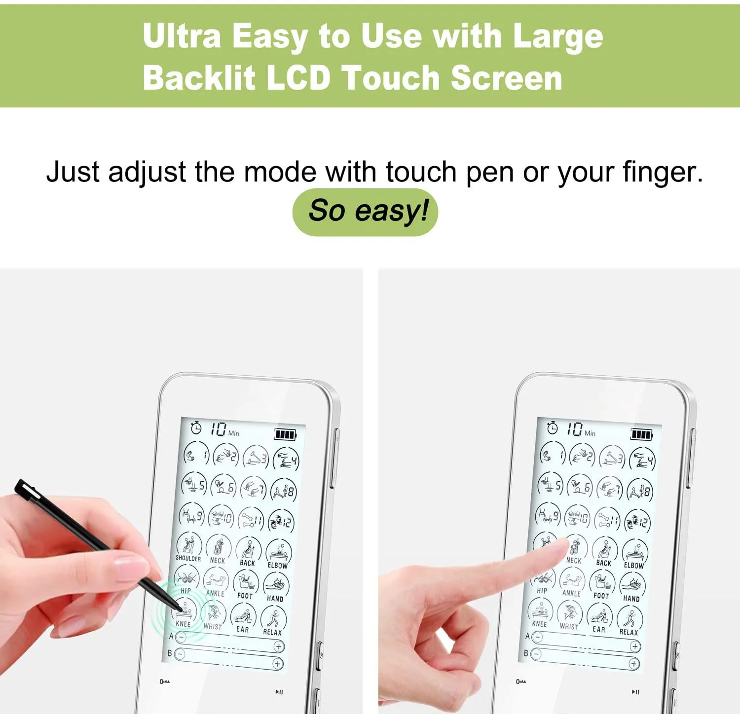 Features | 5S phone shape design and touch screen tens machine | ||||||