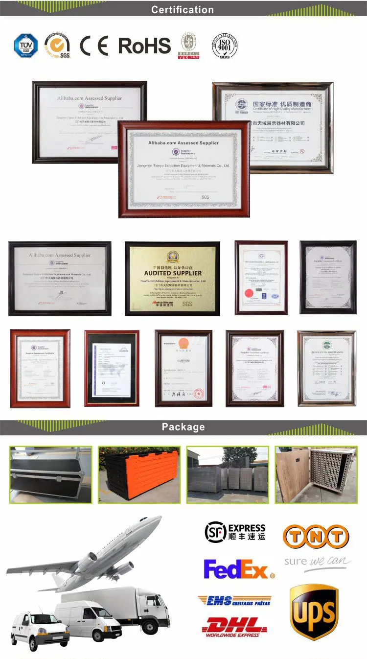 Цзянмэнь Tianyu выставочное оборудование и материалы Co., Ltd., Профессиональным комплексным предприятием, который специализируется на демонстрационное оборудование компания занимается исследованием, разработкой и производством источников, по выгодной цене и выставочный дизайн. С постоянным развитием выставки промышленности в последние годы, Tianyu дисплей как профессиональная выставка компании, прилипает к постоянным инновациям и произвести различные демонстрационное оборудование с оригинальность и выдающимися характеристиками. |