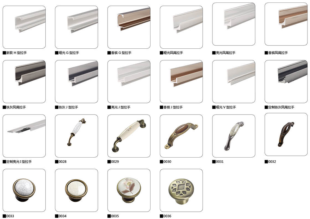 Handle Type | G-type, J-type, V-type, I-type, Pteris handle, Buckle handle, Same color handle, Customized handle |