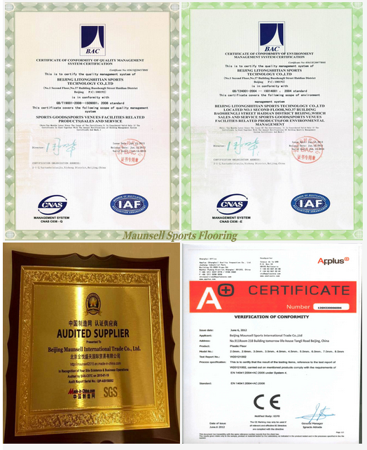MaunsellНапольное ПВХ-покрытие является профессиональным в помещении/на открытом воздухе ряд настила спорта винила произведенный в 3,5-10 мм толщины. Вы можете комбинировать между нашими 12 однотонных расцветок и 8 деревянных отделках для того чтобы дать большой взгляд для занятий спортом поле или спортзала.