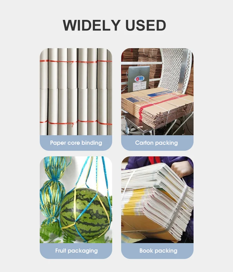 they produce packed into bundles of 10 pieces each for easy managing and also applying to the small size semi-automatic tying machines operated by newspaper office ,publishing houses, post office, paper mill, department store, confectionery store, timber store ,bookstore ,etc, for carrying their packing works)We also offer the best quality PE automatic tying machine