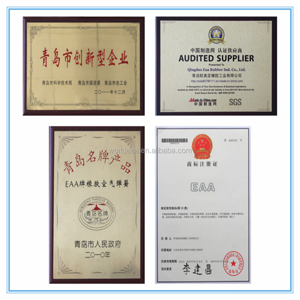 Qingdao EAA Rubber Industry co., Ltd. расположена в прекрасном прибрежном городе-Циндао. Основанная в 2002 году, завод занимает площадь около 120000 квадратных метров, работает более 1000 человек, включая 100 техников и 8 старших инженеров. Преданные шины и резиновые рессоры воздуха и другие резиновыеТовары.