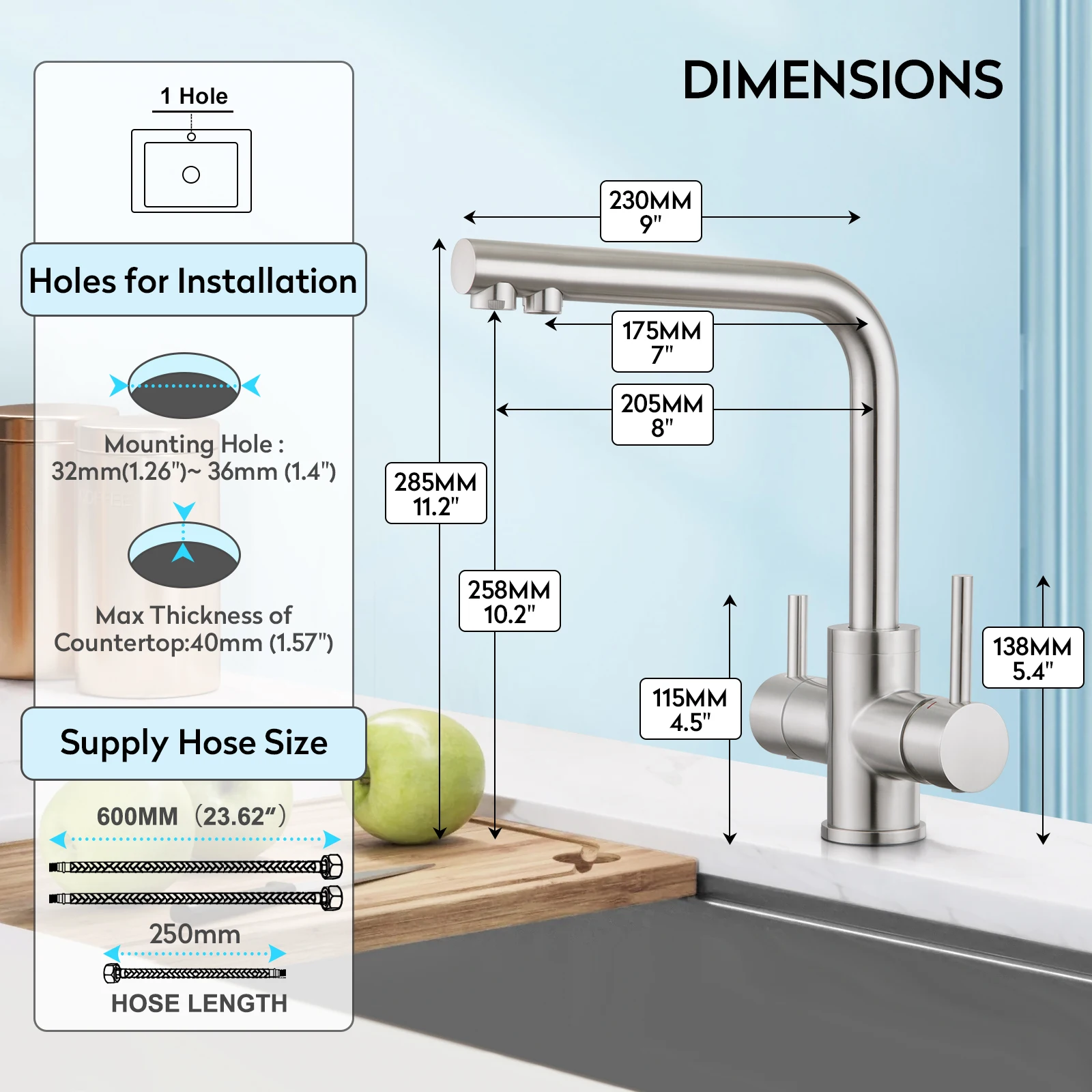 14. On-center measurement | Single Hole | |