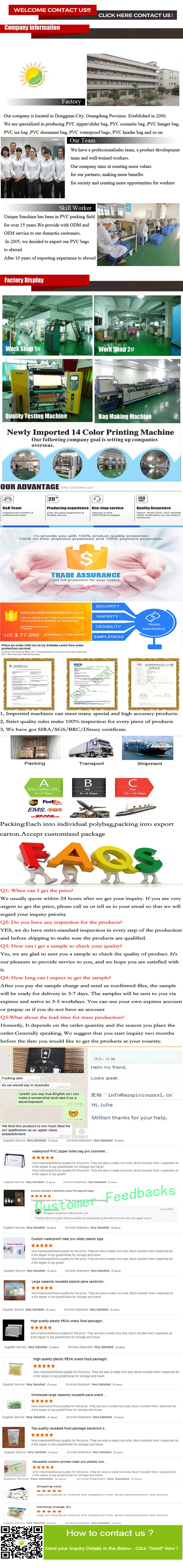 We are specialized in producing PVC Bags with more than 10 years experience. All the time,we persist the principle quality first,customer first and competitive price,service first which enable us to win the overseas markets such as Southeast Asia,Middle East,Africa,EU,North America..ect.