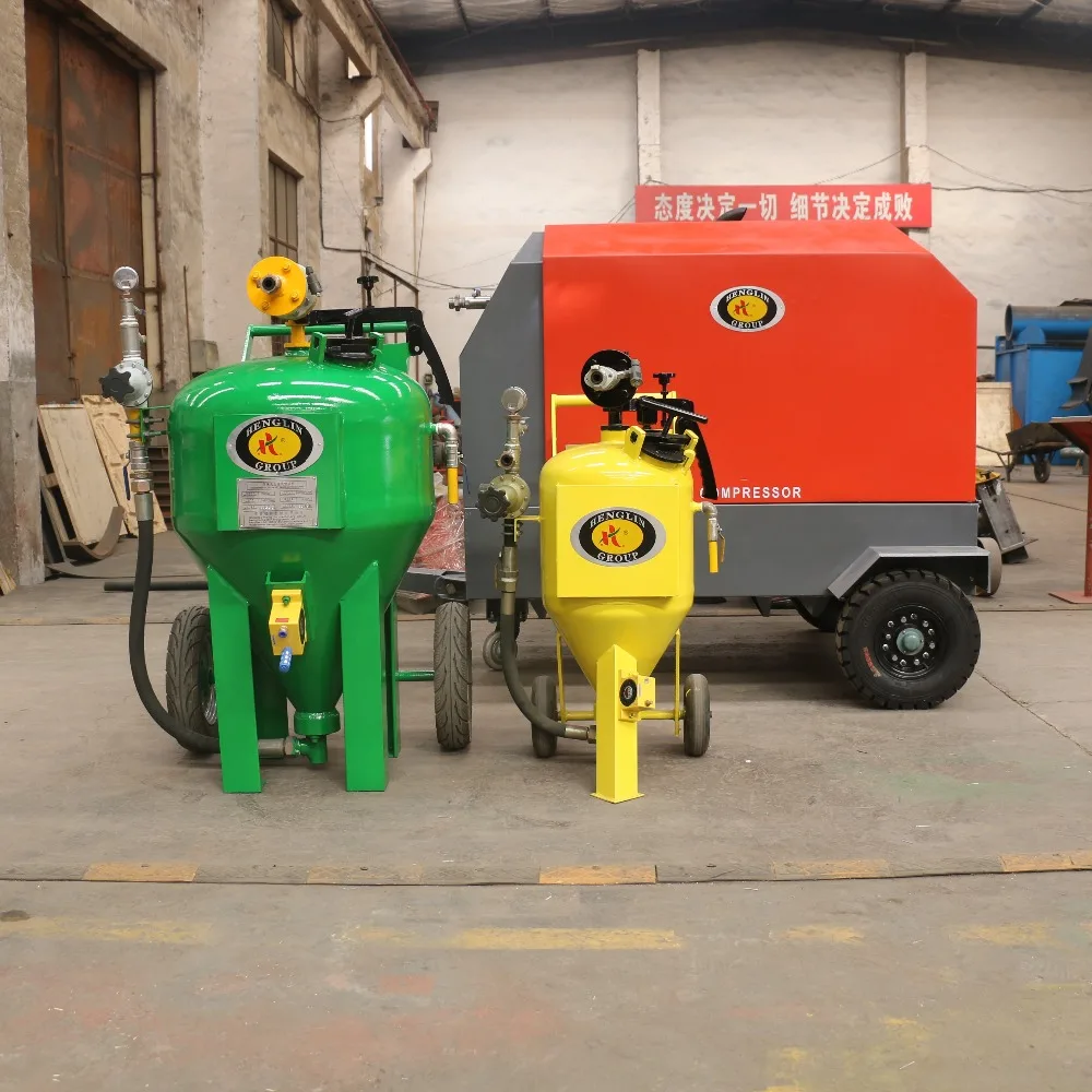 This machine runs perfectly with a 60 CFM air compressor. This machine is ideal for businesses with 0.5–4 hours of blasting per week. It is completely portable through doorways and staircases.