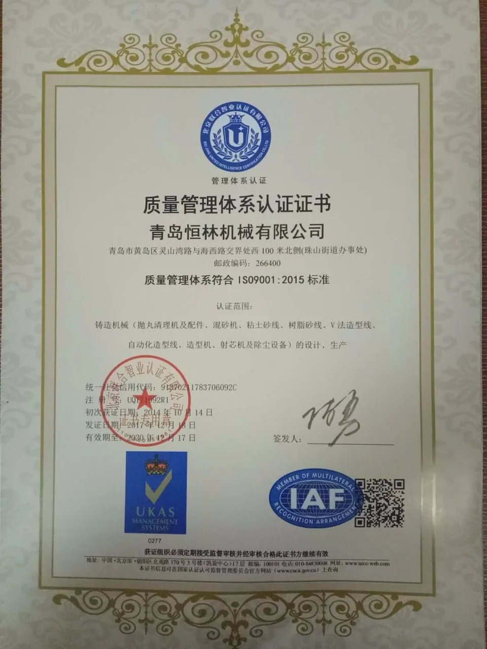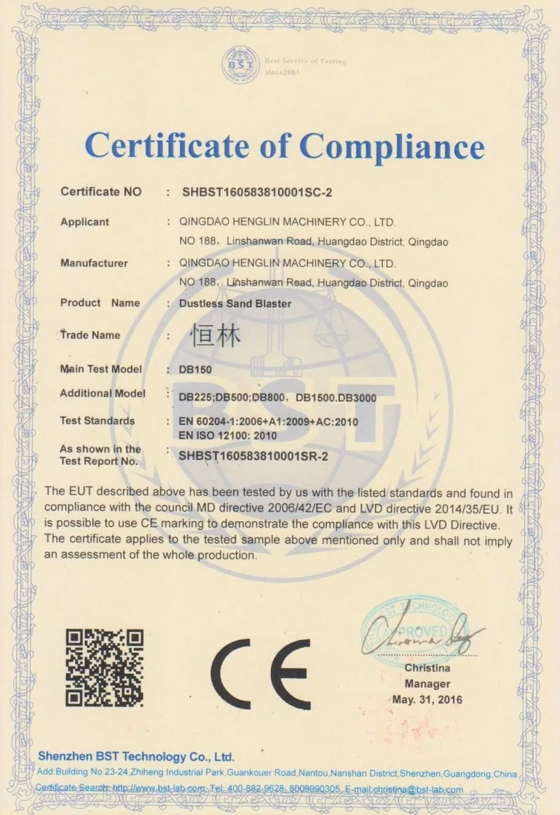 Also we have CE certificate for our machines.