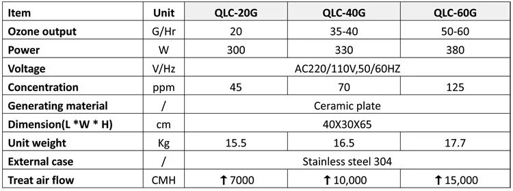 LTМодель использует керамическую озоновую пластину с более чем10000 часов срок службы;