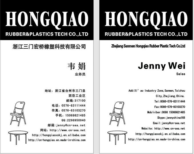 Zhejiang Sanmen Hongqiao Rubber Plastic Technology co , establish at 2005,specialized in design,research,produce,sales of HDPE plastic table and chairs,such as Round banquet table,Regular folding table,Folding in half table,Square table,Adjustable table & folding chair. Products widely used for banquet,restaurant,park,bar,beach.
