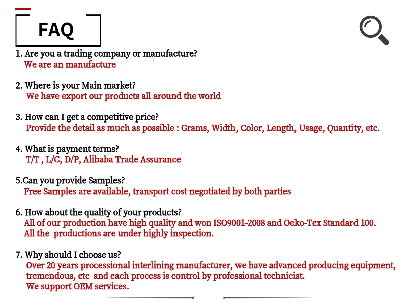 MOQ: If you want to test quality, we can accept small order at least 100 meters.