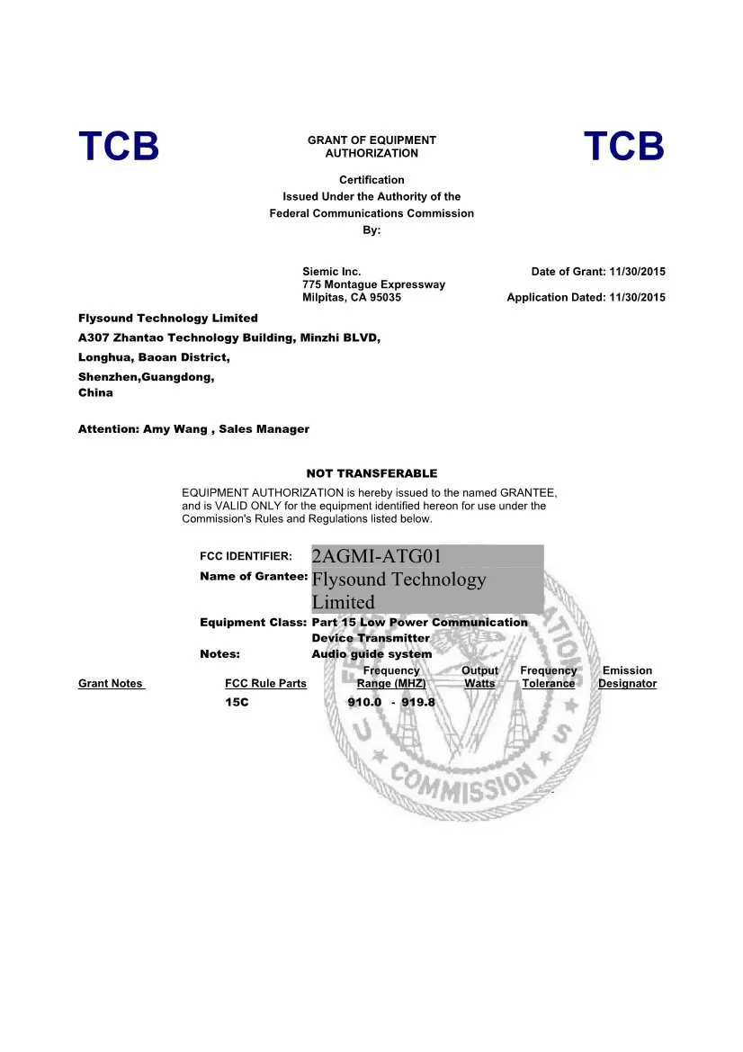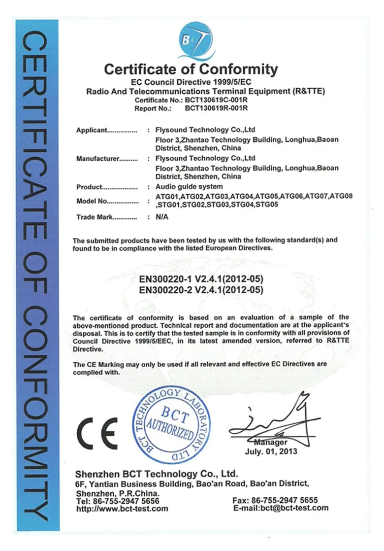 Technical Specification of Wireless audio tour guide system:
