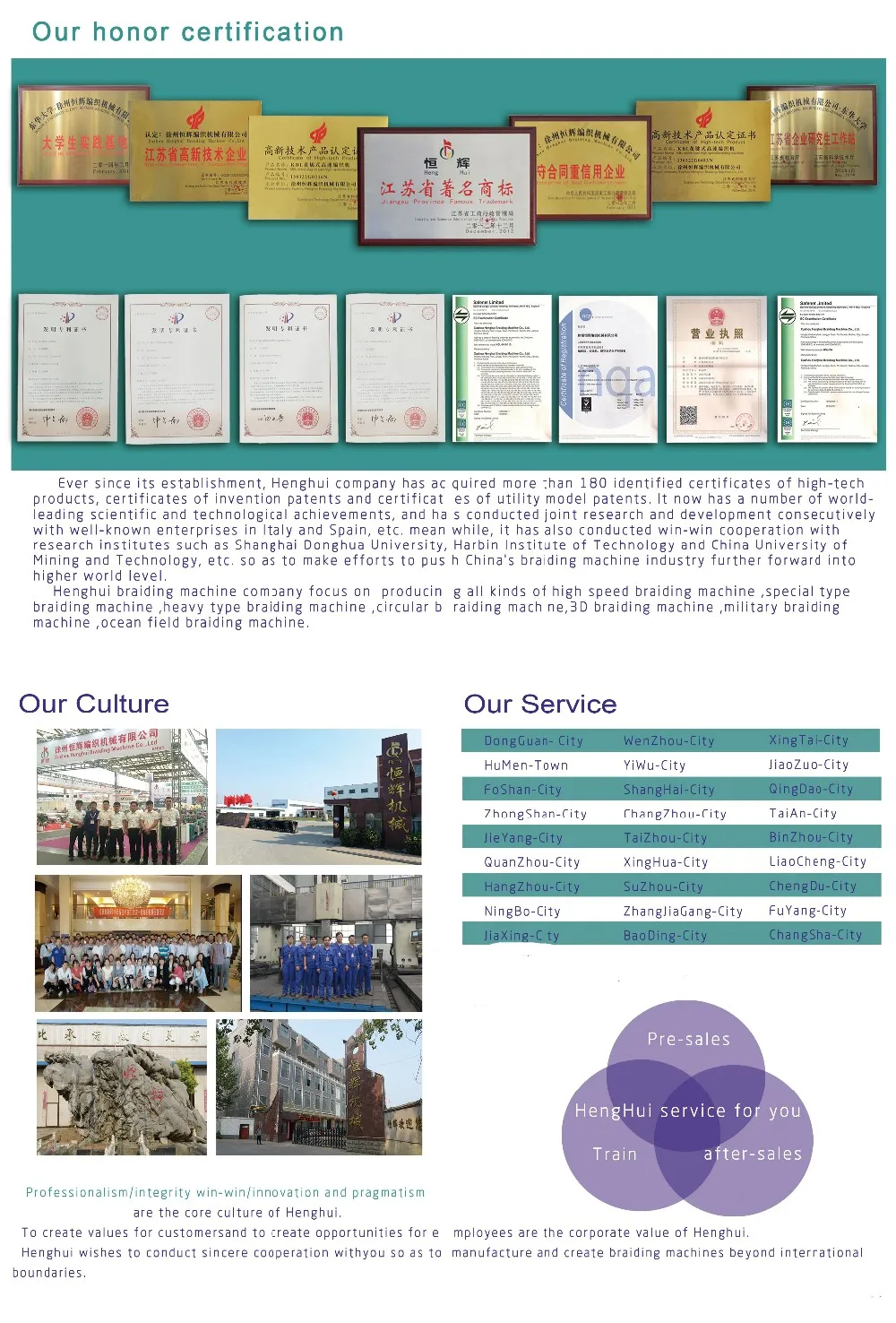 1 Nearly 50 years experiences in manufacturing braiding machines.With more than 1000 kinds of braiding machines
