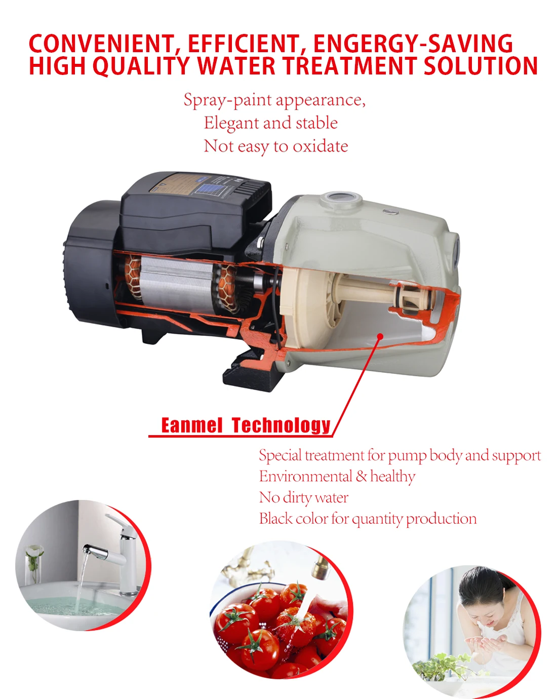 Качает хорошоВоды, повышение уровня водопроводной воды, орошения сада и фермы.ЯT'Также подходит для слива реки иА также снабжение водой для отелей, ресторанов и высоких зданий.