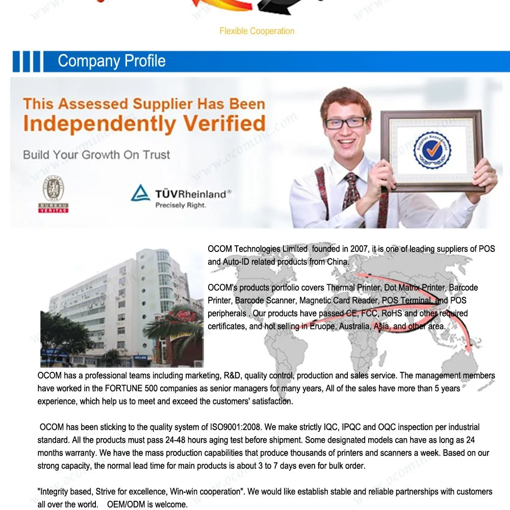 OCOM технологии Лтд.Является основным поставщиком и производителем продуктов, связанных с POS и Auto-ID, с проверкой TUV.OCOM обслуживает компанию fortune 500, и имеет высший уровень торговли 1%
