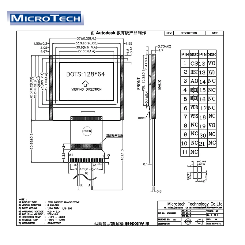 Active area | 27.37(W) X 19.18(H) mm |