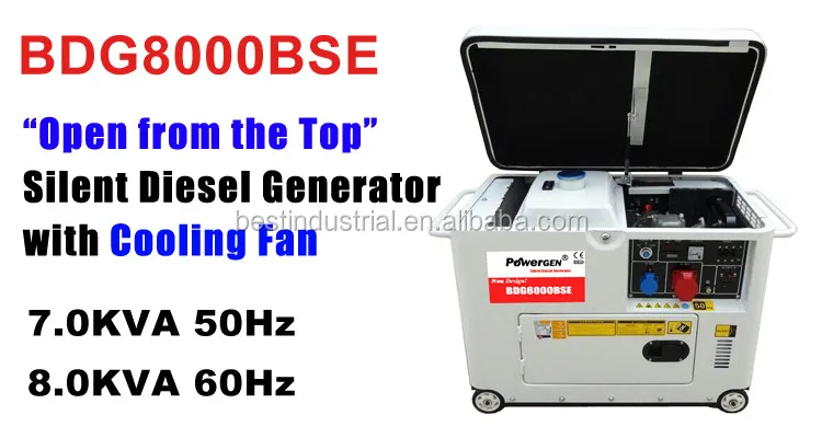 The silent diesel generator model BDG8000BSE 7KW 50Hz or 8KW 60Hz is usually used in places such as houses, shops without connection to a power grid, or as emergency power-supply if the grid fails. The model BDG8000BSE is featured