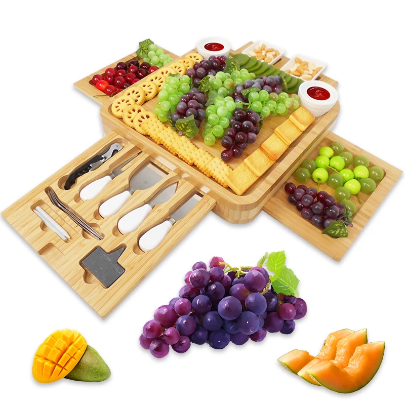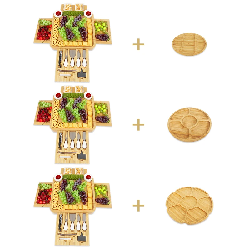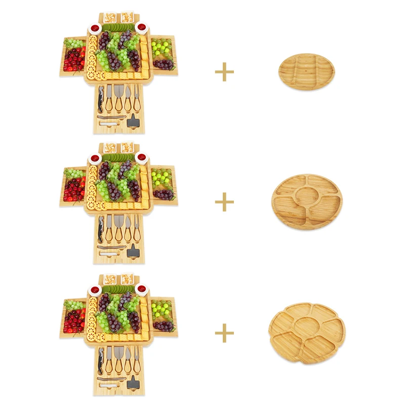 Бамбуковая доска для сыра набор тарелок мяса сервировочный лоток с ящиком разделочная и