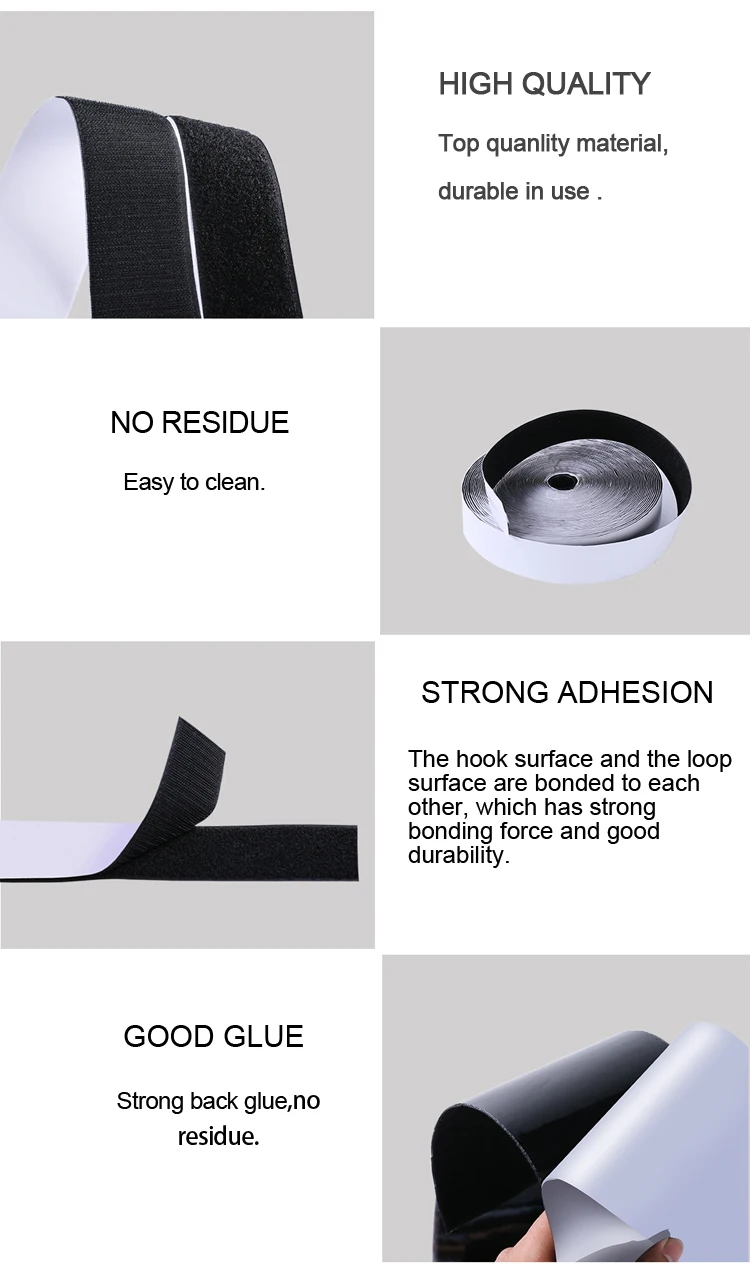 Amazon горячая Распродажа тканевый нейлоновый крепеж 25 мм * 5 м самоклеющийся черный крючок и липучка клейкая лента ремешок