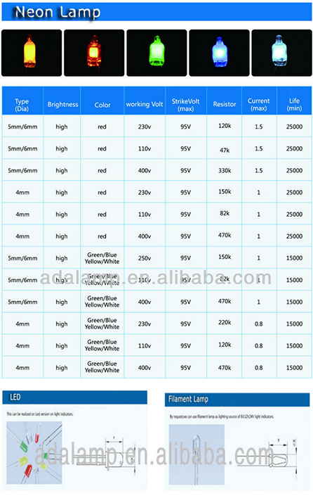 Filament Lamp:By request ,we can use filament lamp as lighting source of 6v,12v,24v light indicators.