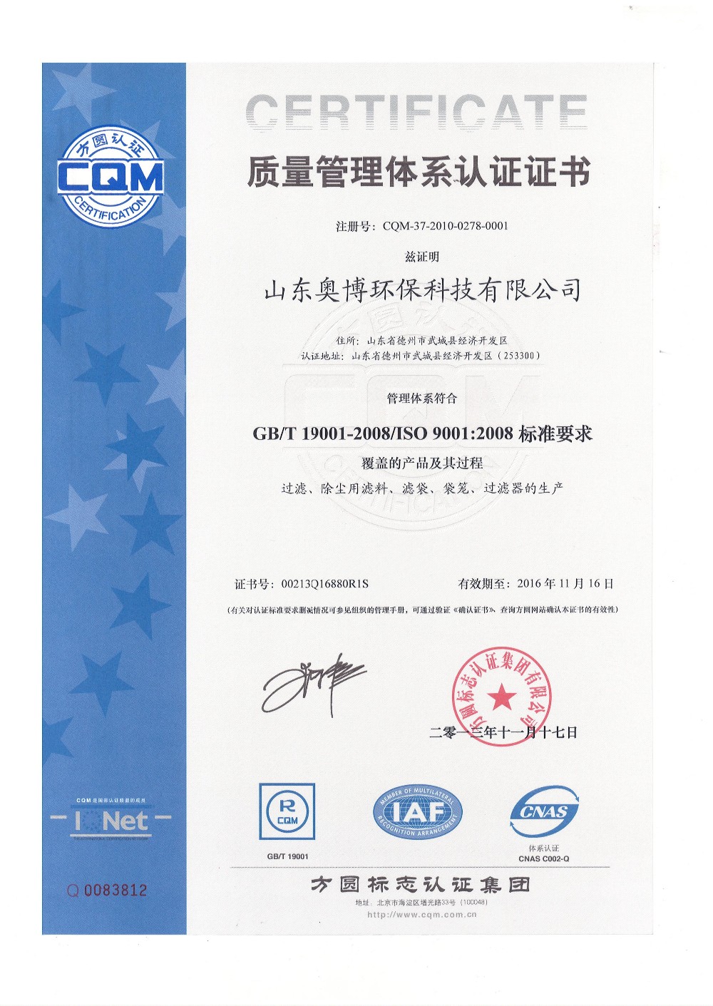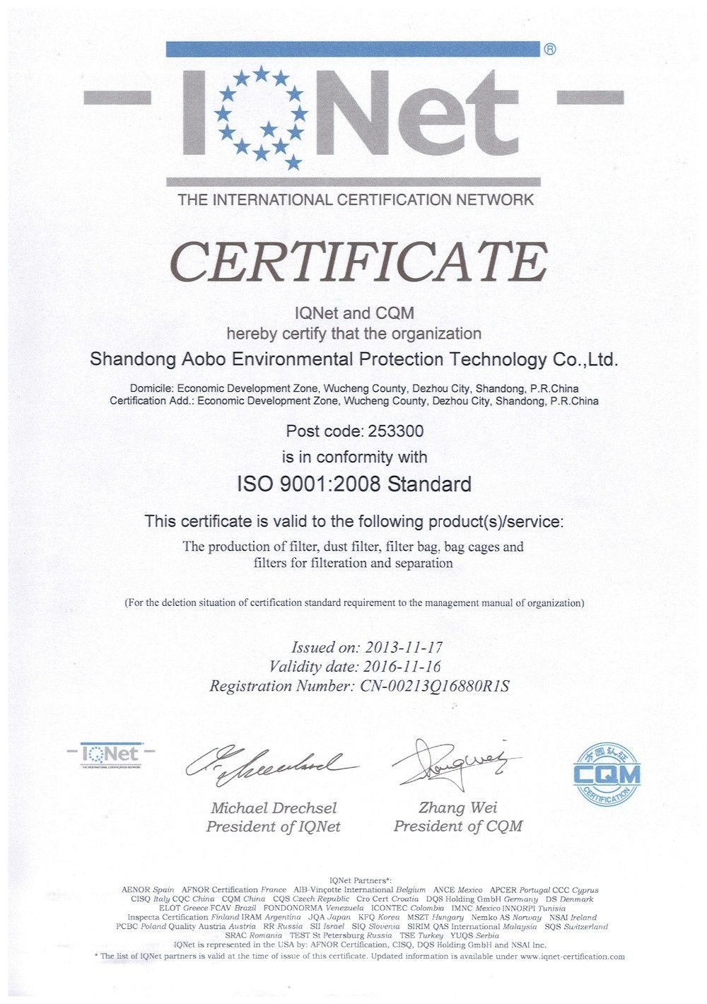 Компания Shandong Aobo Environmental Protection Technology Co., Ltd. была основана в 2007 году с уставным капиталом в 50,08 миллионов юаней, охватив 150 акров, компания имеет современное производственное оборудование и научное оборудование, основной продукцией являются высокотемпературно-стойкие фильтрующие материалы, фильтрующие мешки, фильтры, Мешки клетка и большое эффективное оборудование для удаления пыли, является китайской ассоциацией фильтрации и разделения блока, Китай в области охраны окружающей среды промышленности магистральных предприятий.