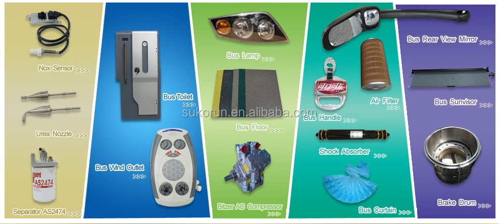 Sukorun (Xiamen) Electricity and Machinery Co., Ltd. is a professional manufacturer of Commerical Vehicle parts. We have independent import and export rights. we are keeping good relationships with a number of suppliers of bus&truck parts and most of which are the main suppliers of KingLong, YuTong and Golden Dragon. We offer quick delivery and promise that the goods we supply are all original parts and with excellent quality and reasonable prices. We have established good cooperative relationships with customers from South Asia, Southeast Asia, Africa, Japan and other countries and regions. Furthermore, our export business is rapidly increasing.