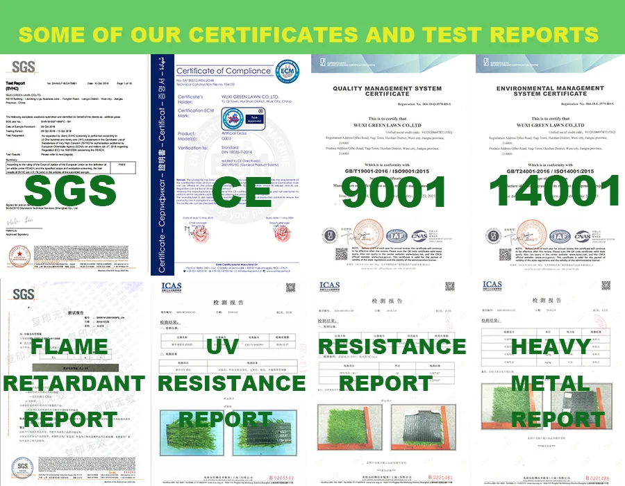 Option 4:loading weight,usage,we can design the perfect artificial grass for you. Q3:Are you willing to provide the samples? Sample can provided to check quality, sample is free while customer need to pay the courier cost. and usually we accept western union and paypal account for payment. sample can be ready within two days for regular models.Q4:How about your price ,how about your mass production? The mat and artificial grass can be used 6-8 years. Our price is flat with the market one. If you need costomized ,we can also supply for you . The lead time of mass production will depend on quantity,production art,etc.FYI,20-30 days for 10000 square metre. Q5:How can we guarantee quality? Each step of production and finished prodcuts will be carried out inspection by QC depertant before shipping.